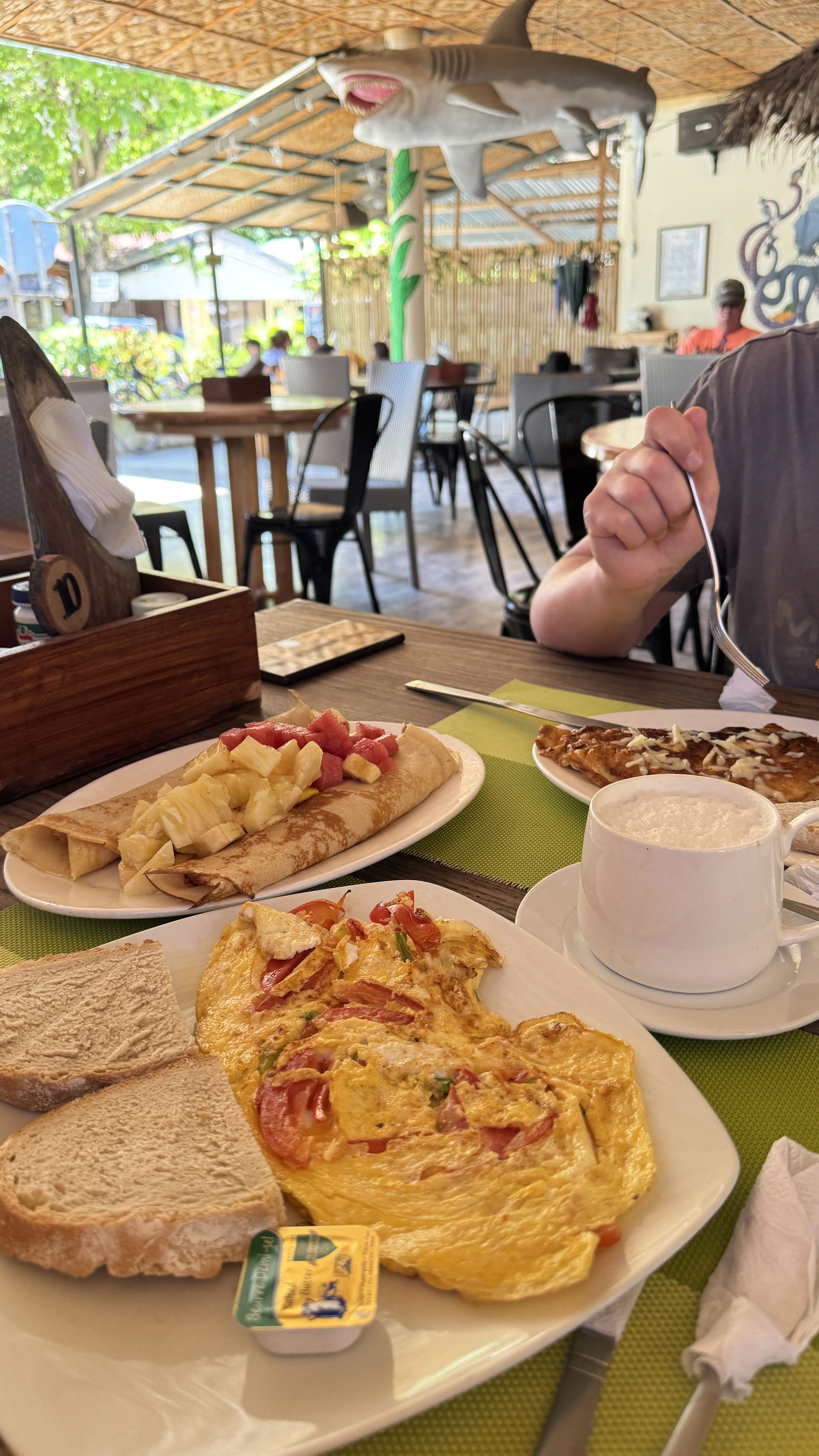 Tiki Bar Bantayan - аля европейское кафе с завышенными ценами, но огромными порциями. Два омлета, два капучино и два блинчика с фруктами - 23$.