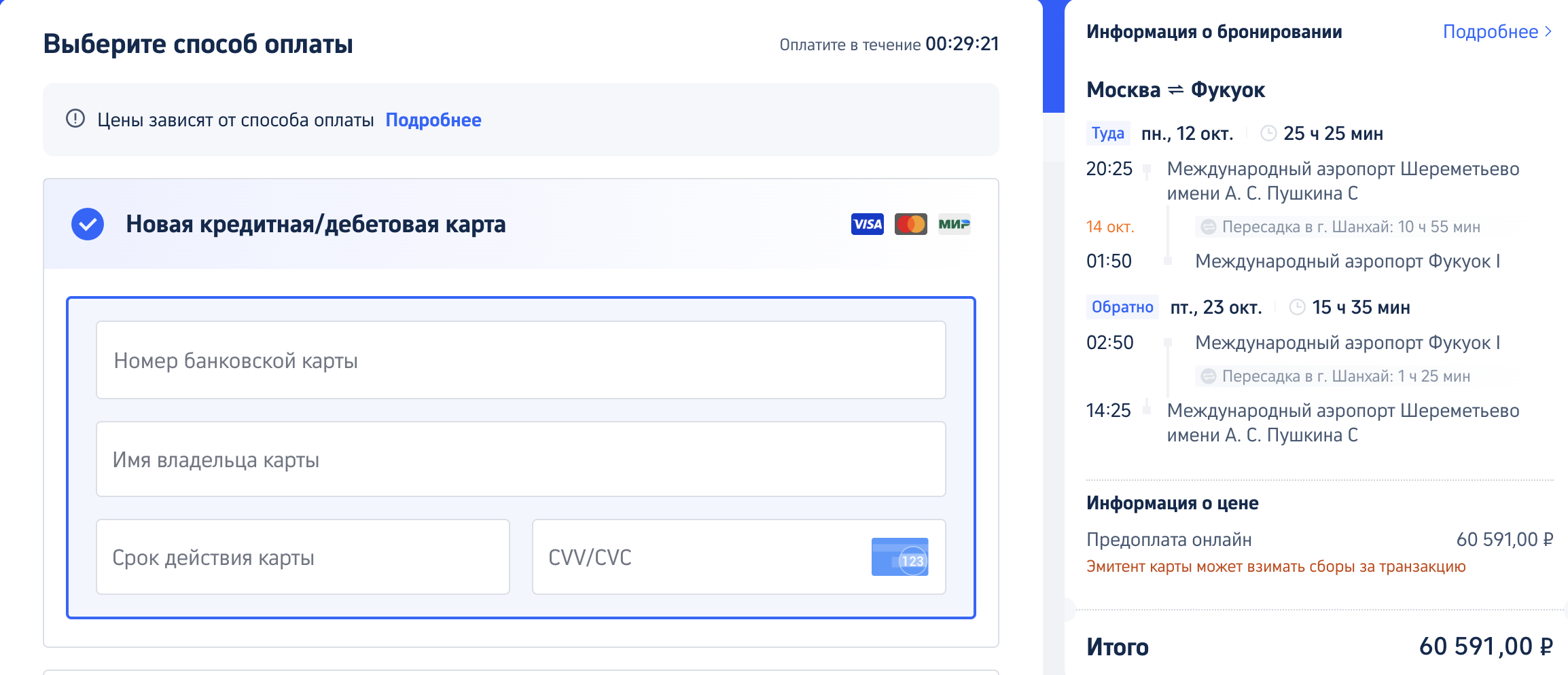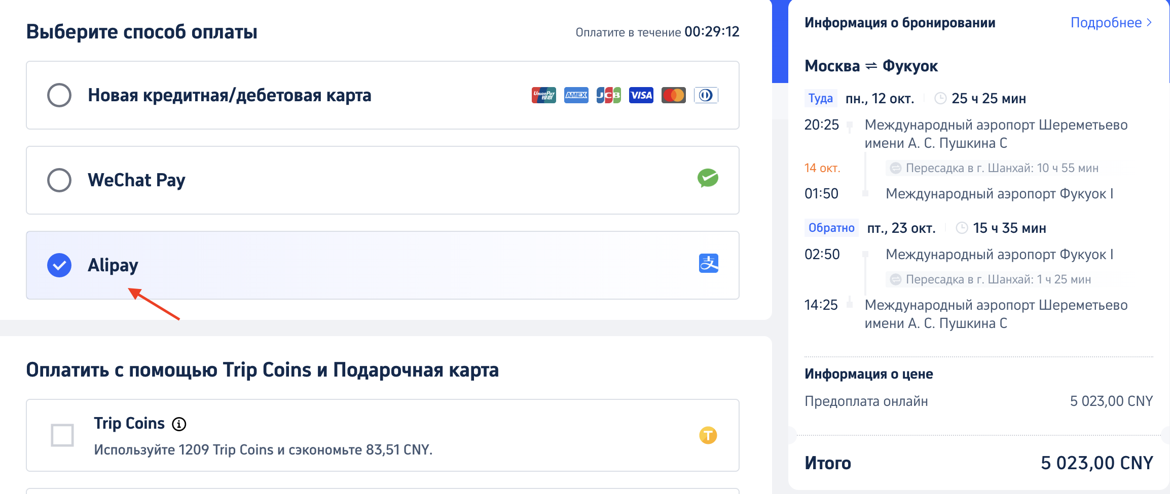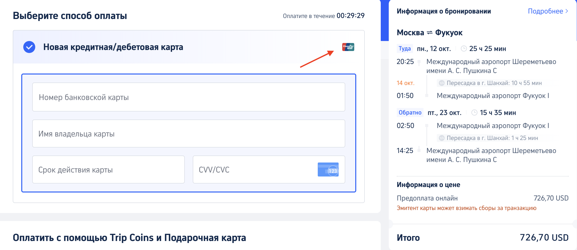 ❗️Важно: перед оплатой уточните курс списания юаней в вашем банке. Он может быть больше, чем покупка нужных билетов через другие сайты или напрямую у авиакомпании.
