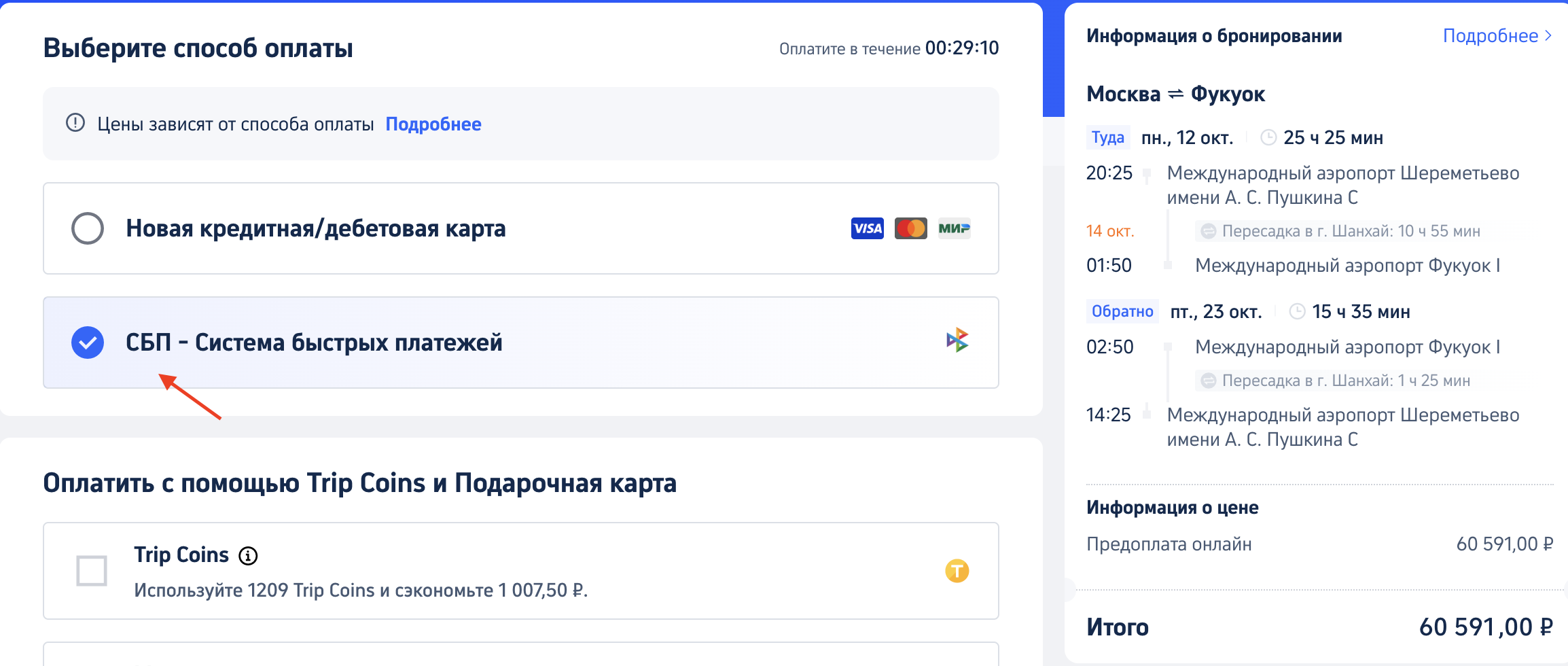 Перед этим регистрируемся в системе быстрых платежей (СБП). Далее скачиваем приложение ОПЛАТИ на телефон, регистрируемся и пополняем счет по ЕРИП с любой карты. Потом сканируем QR-код СБП на сайте trip.com и оплачиваем.