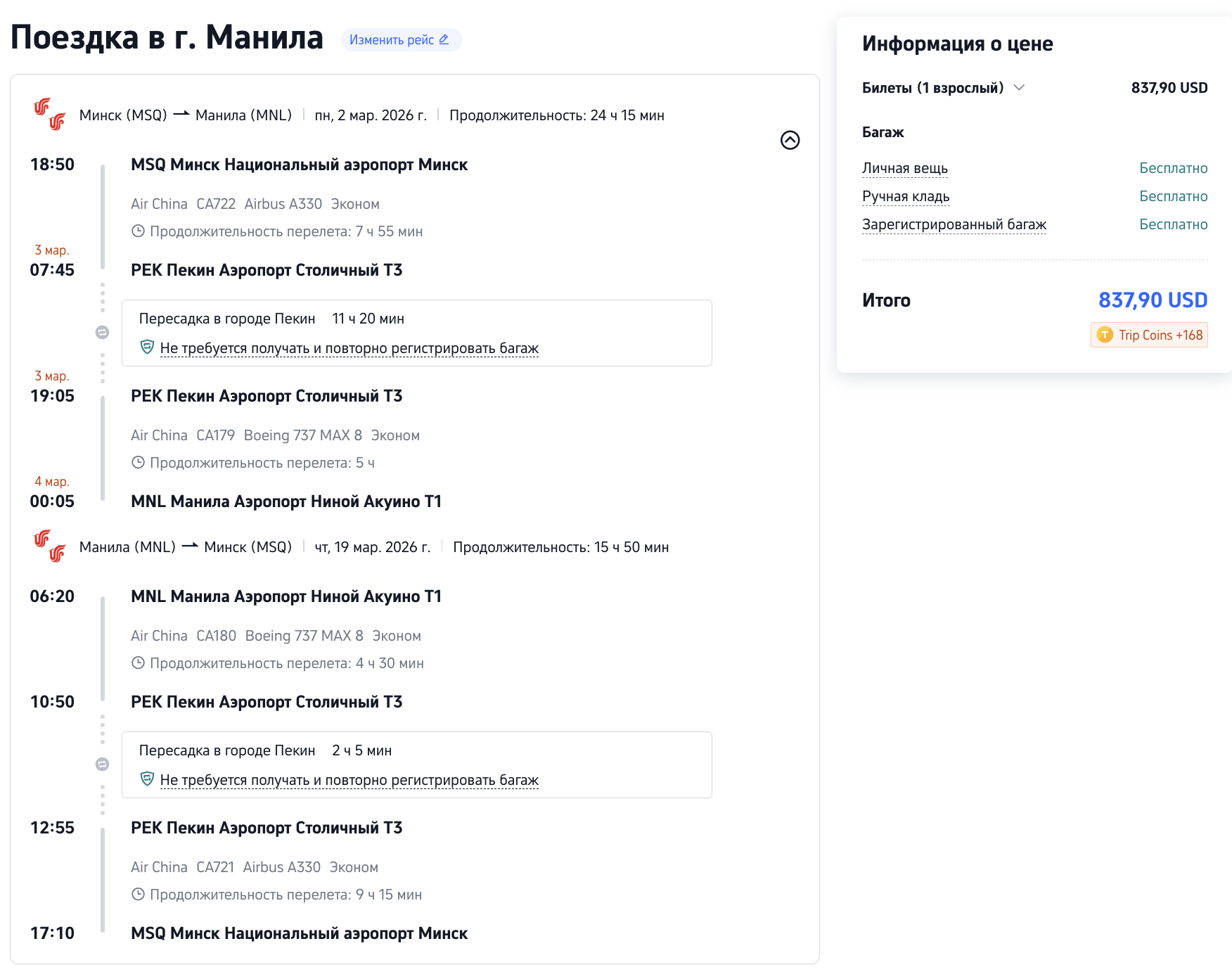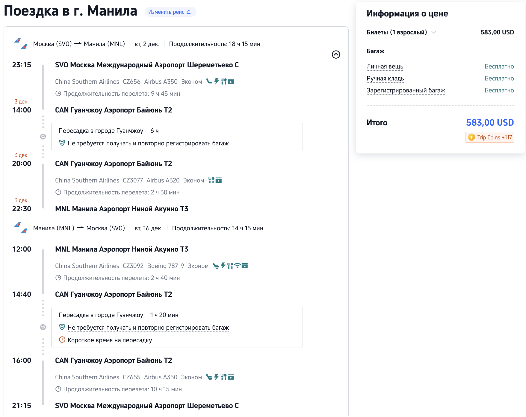 Билеты в Манилу (внимание на хорошие стыковки!)