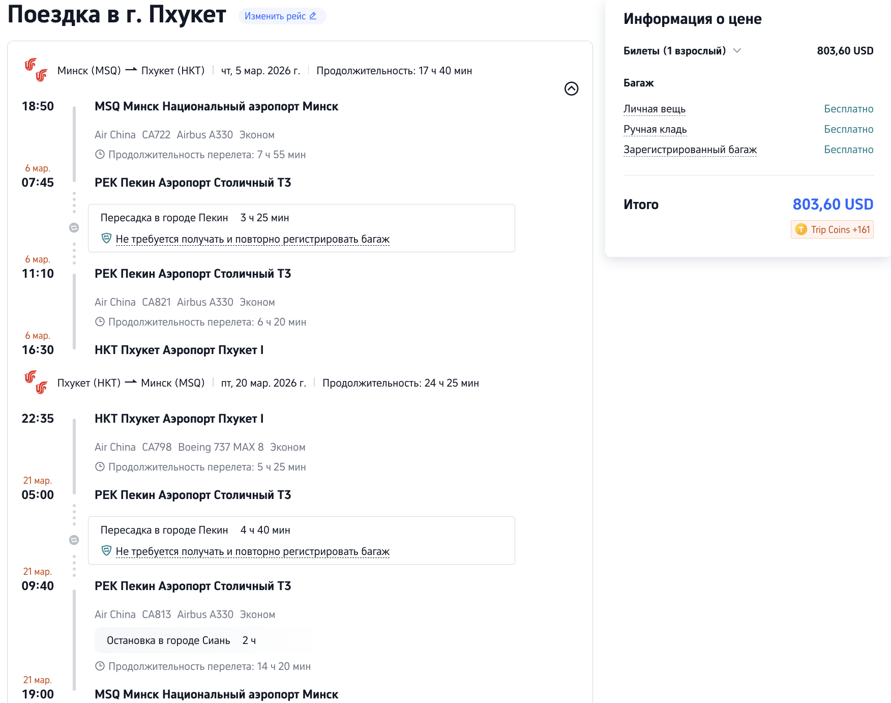 Билеты на Пхукет (отличные короткие стыковки!)