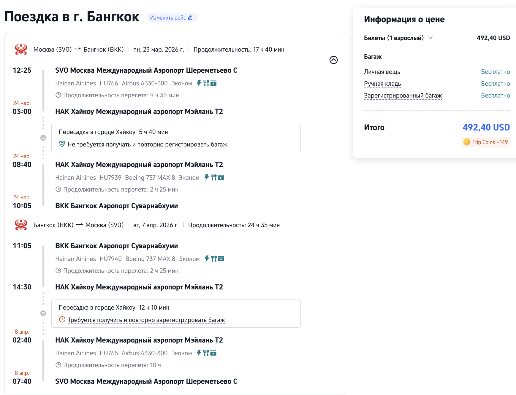 + за эти же деньги можно сделать комби тур Хайнань+Бангкок, используя функцию сложного маршрута на сайте.